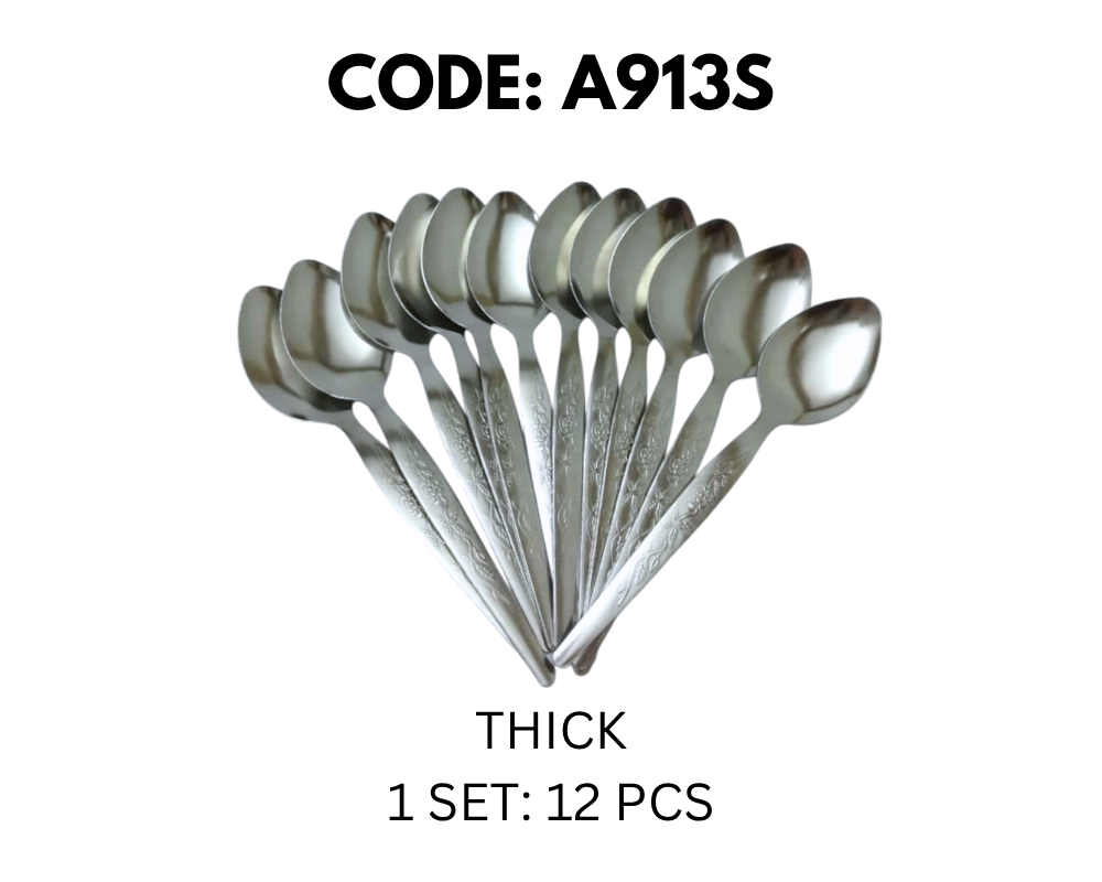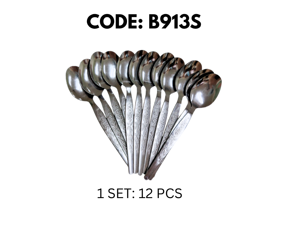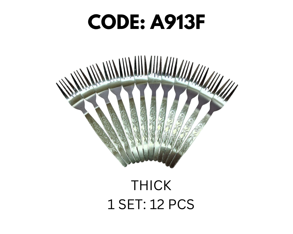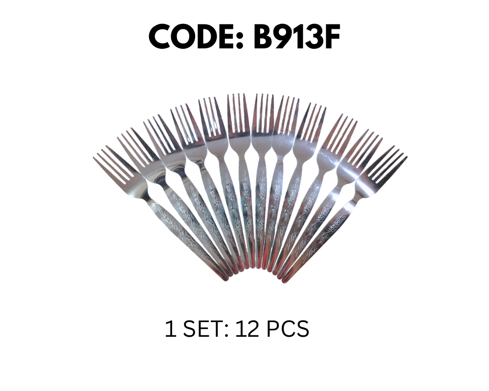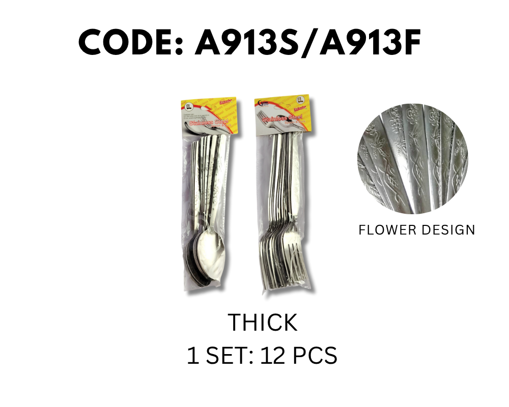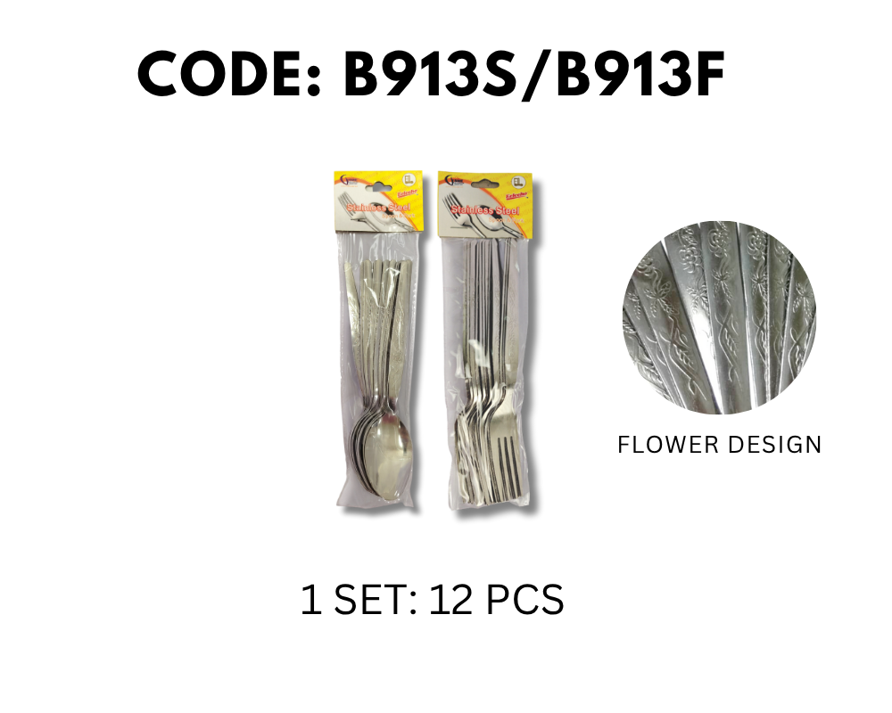 [1 BOX X 12 SETS] 12PCS STAINLESS STEEL FORK SET / SPOON SET FLOWER DESIGN (913S/913F)