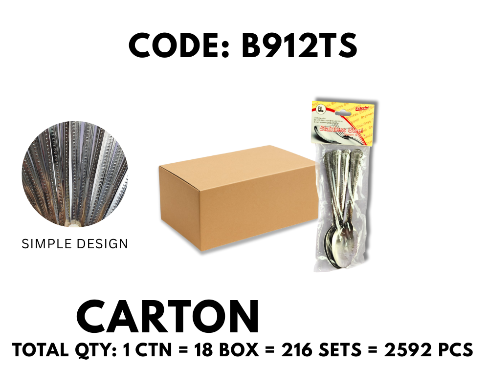 [1 CTN X 216 SETS] 12PCS STAINLESS STEEL TEA SPOON DESSERT SPOON (B912TS)