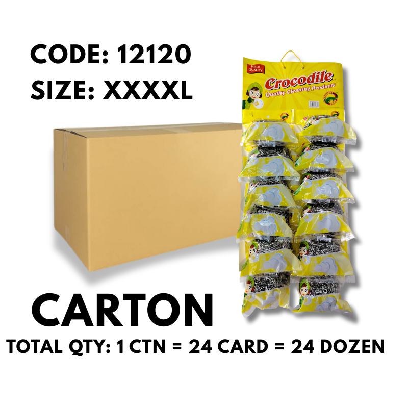 – 1 carton contains 24 cards (24 dozen) of 12pcs stainless steel scourer (Size XXXL)