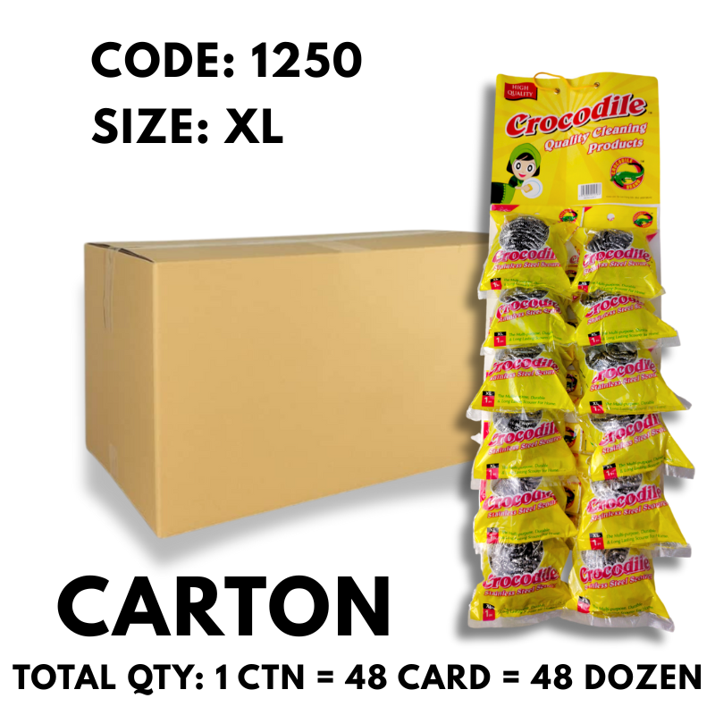 – 1 carton contains 24 cards (24 dozen) of 12pcs stainless steel scourer (Size XL)