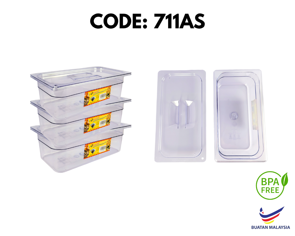 [1 CTN X 48 SETS] MULTIPURPOSE THIRD SIZE PLASTIC FOOD CONTAINER WITH COVER (711 AS/PP)