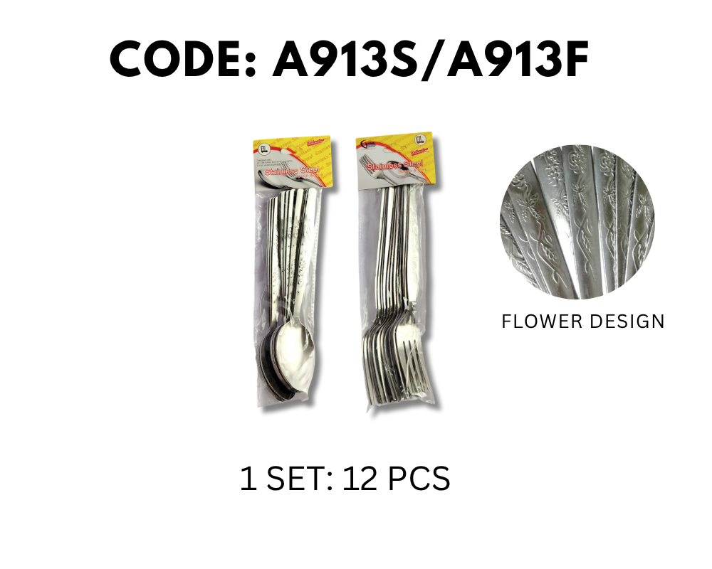 [1 CTN X 72 SETS] 12PCS STAINLESS STEEL FORK SET / SPOON SET FLOWER DESIGN (913S/913F)