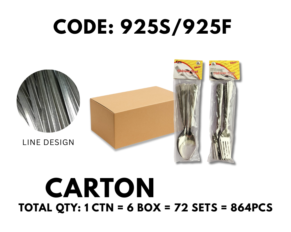 [1 CTN X 72 SETS] 12PCS STAINLESS STEEL FORK SET / SPOON SET LINE DESIGN (925S/925F)
