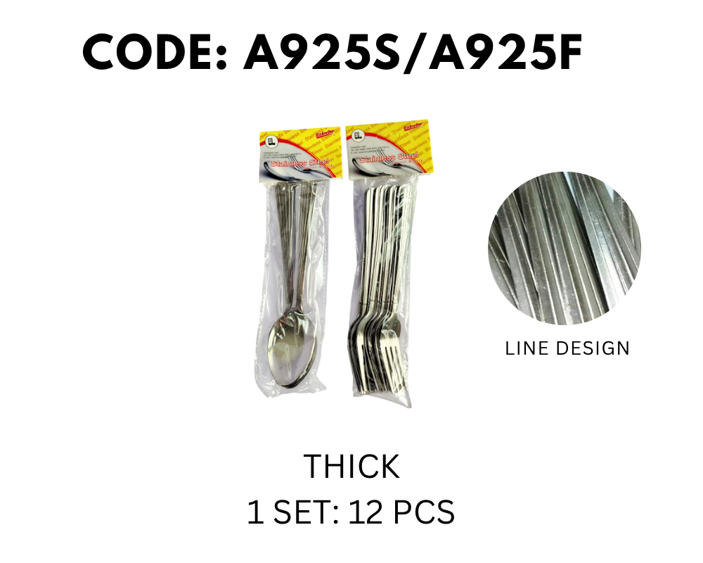 12PCS STAINLESS STEEL FORK SET / SPOON SET LINE DESIGN (925S/925F)