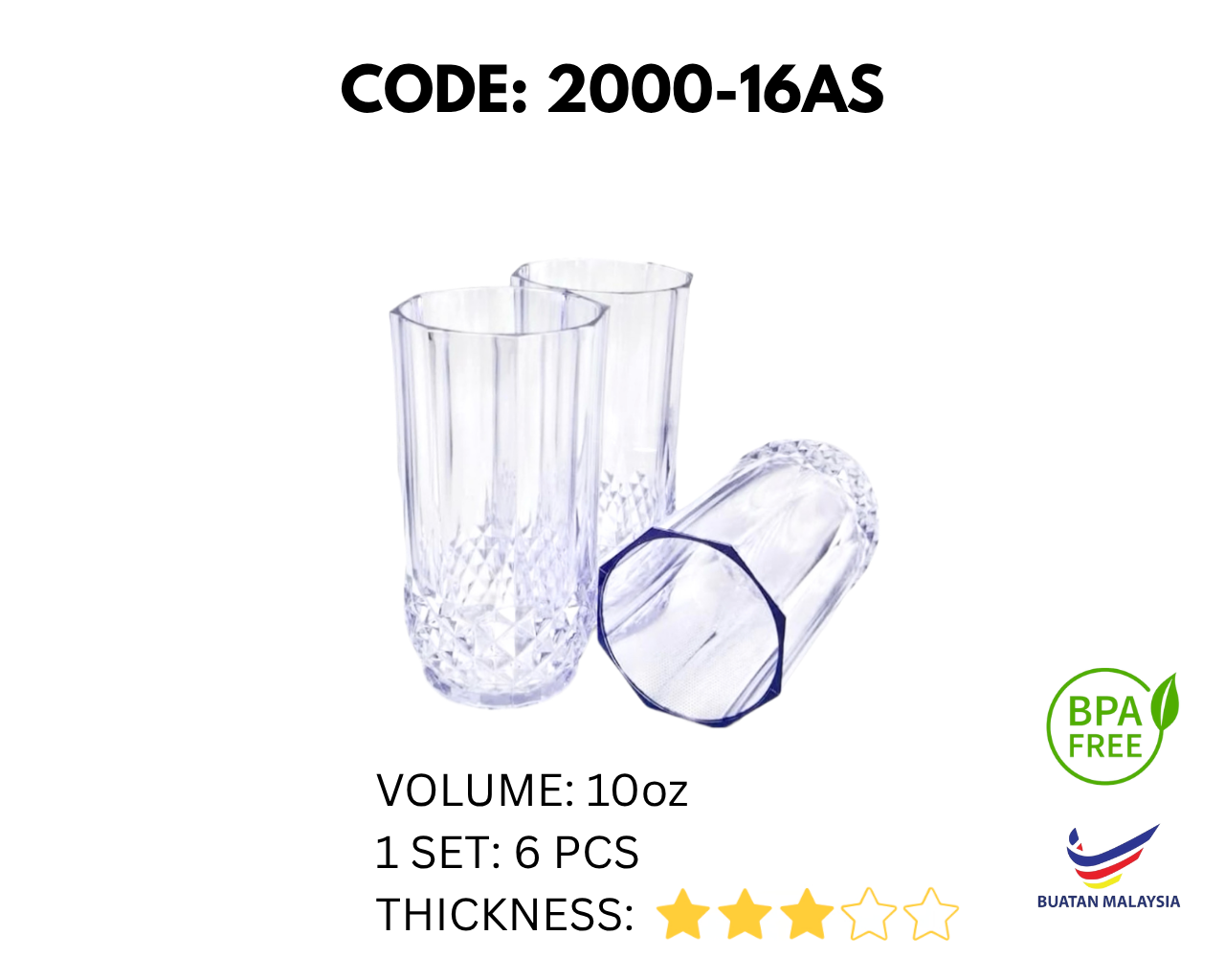 6PCS 12OZ CRYSTAL DESIGN TRANSPARENT PLASTIC CUP (2000-16AS)