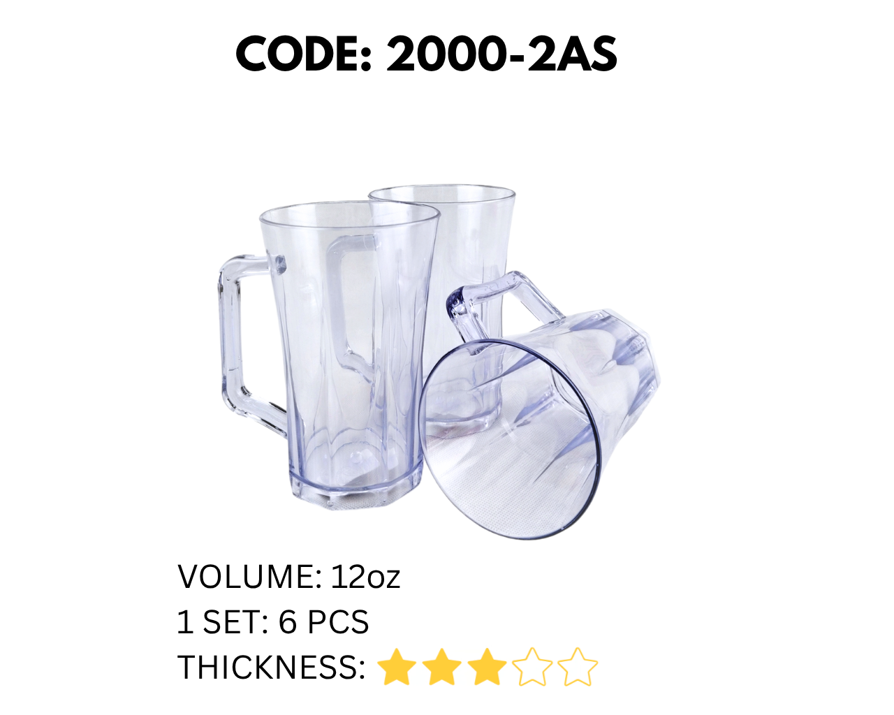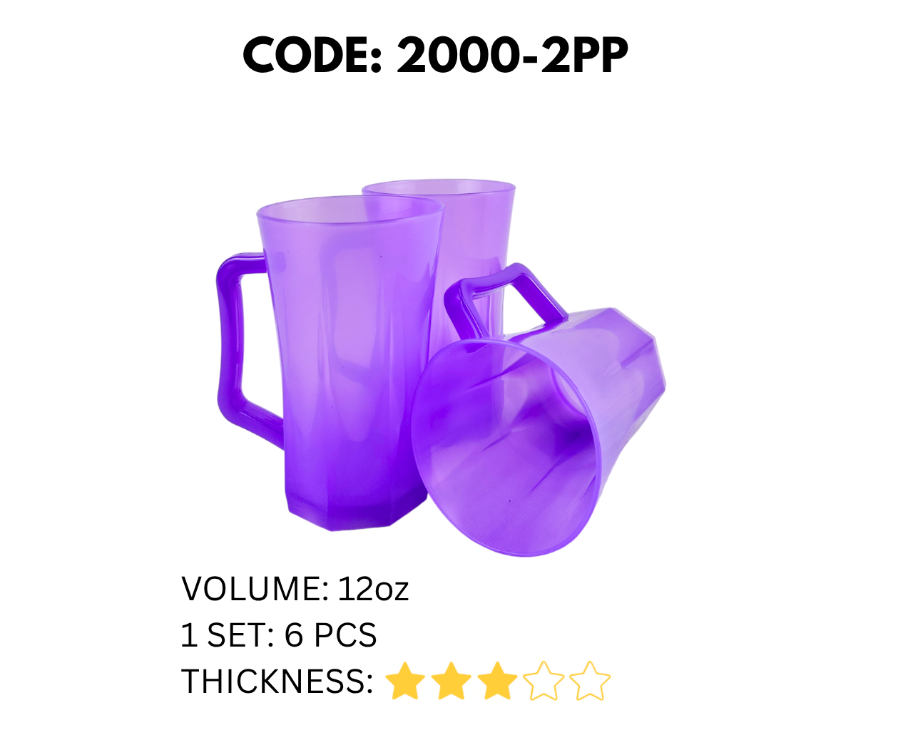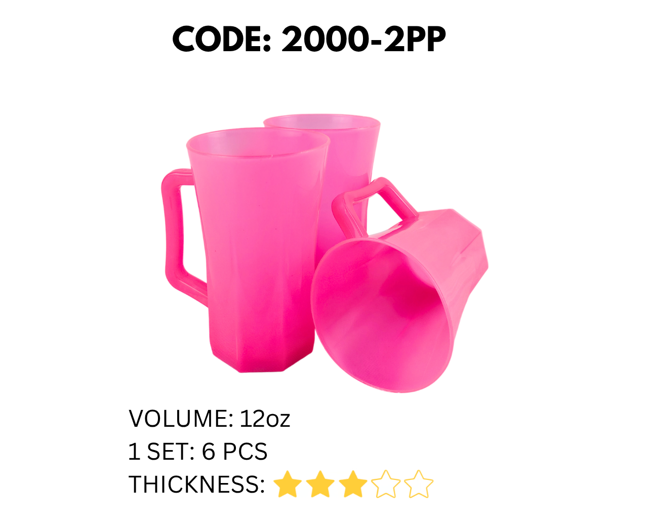 6PCS 12OZ PLASTIC CUP WITH HANDLE (2000-2AS/PP)