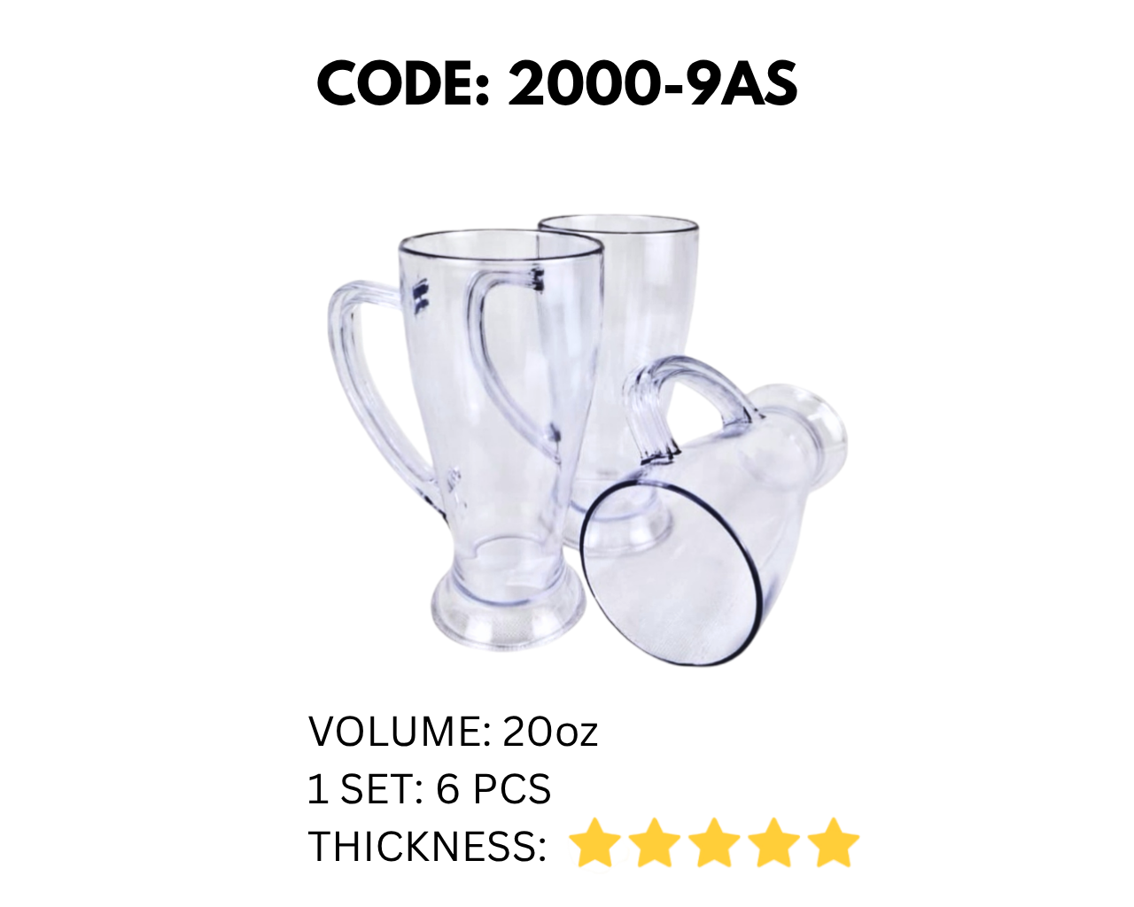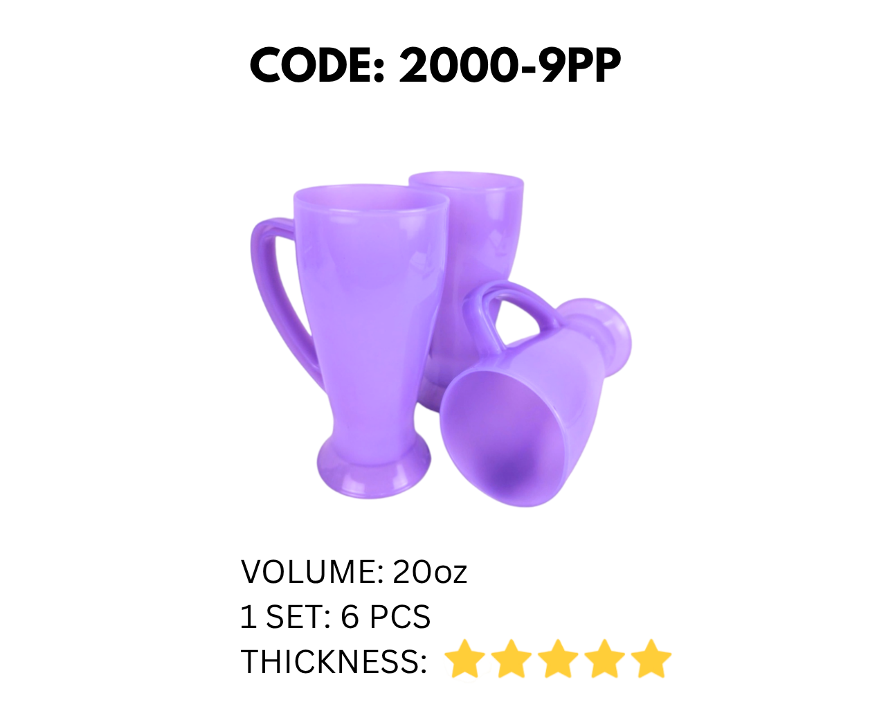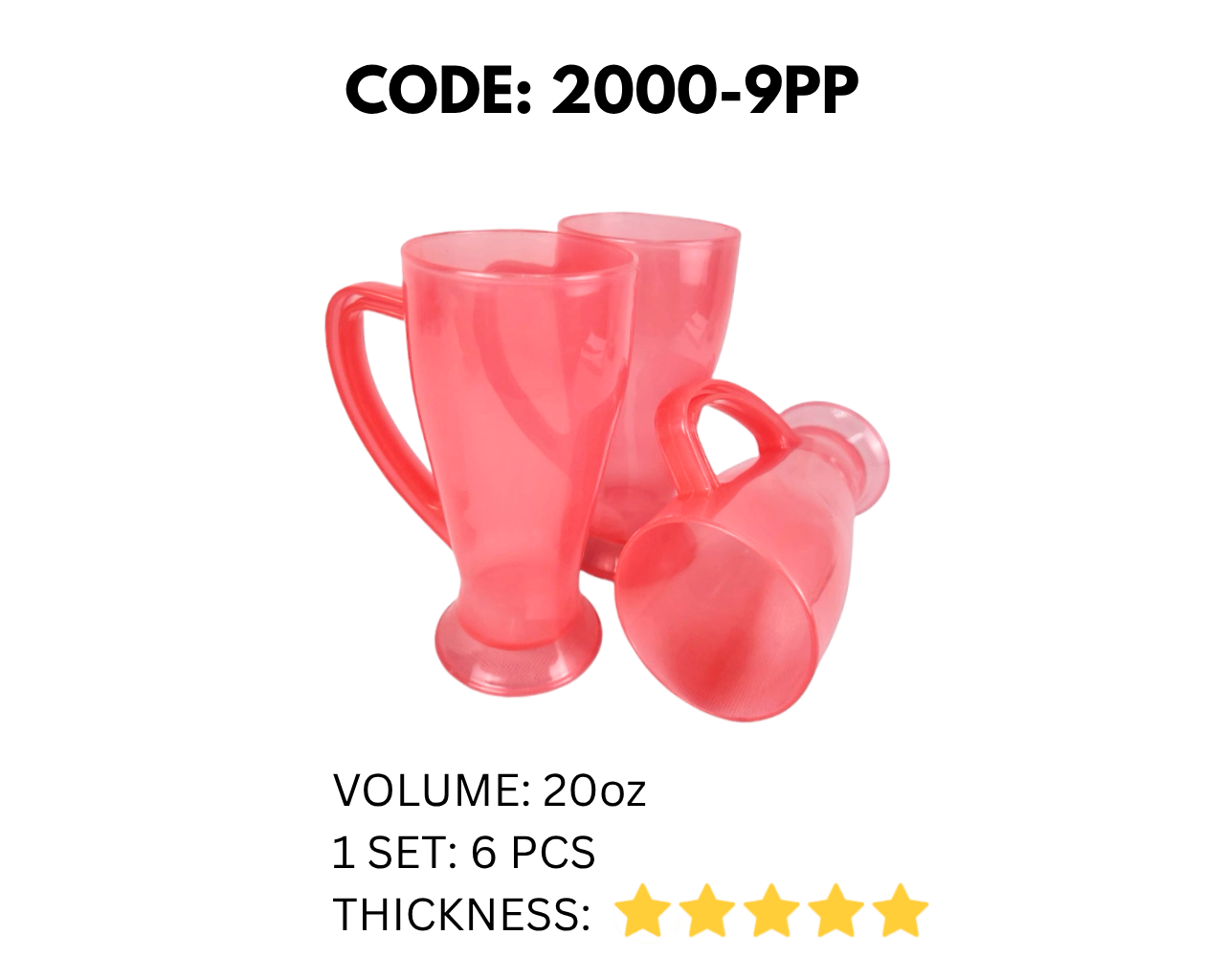 6PCS 20OZ PLASTIC CUP WITH HANDLE (2000-9AS/PP)